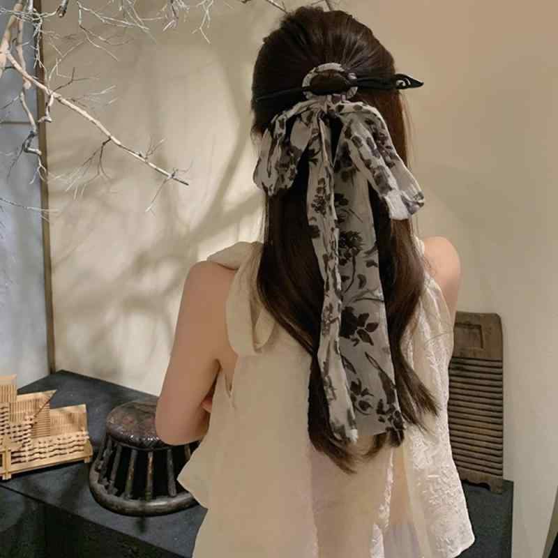 墨絵 リボン 揺れる 上品 エレガント まとめ髪 アップヘア ロング 髪飾り 春夏