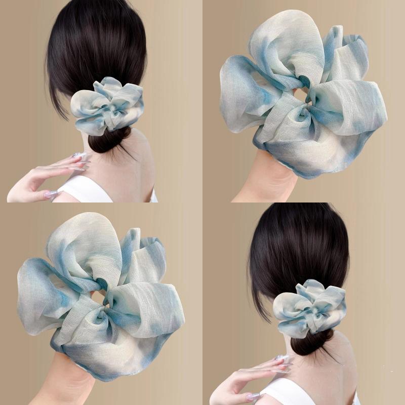 ゴムバンド ヘアバンド ヘアアクセサリー 優しい 絞り 染め 水墨 画 シフォン 大腸 ヘア バンド 女性 2025 新しい スタイル