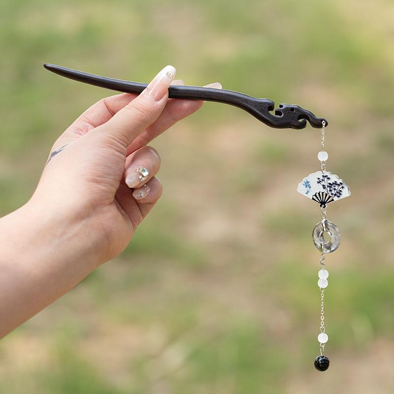 ヘアアクセサリー レディース 女性用 墨竹白鶴 中国トレンド
