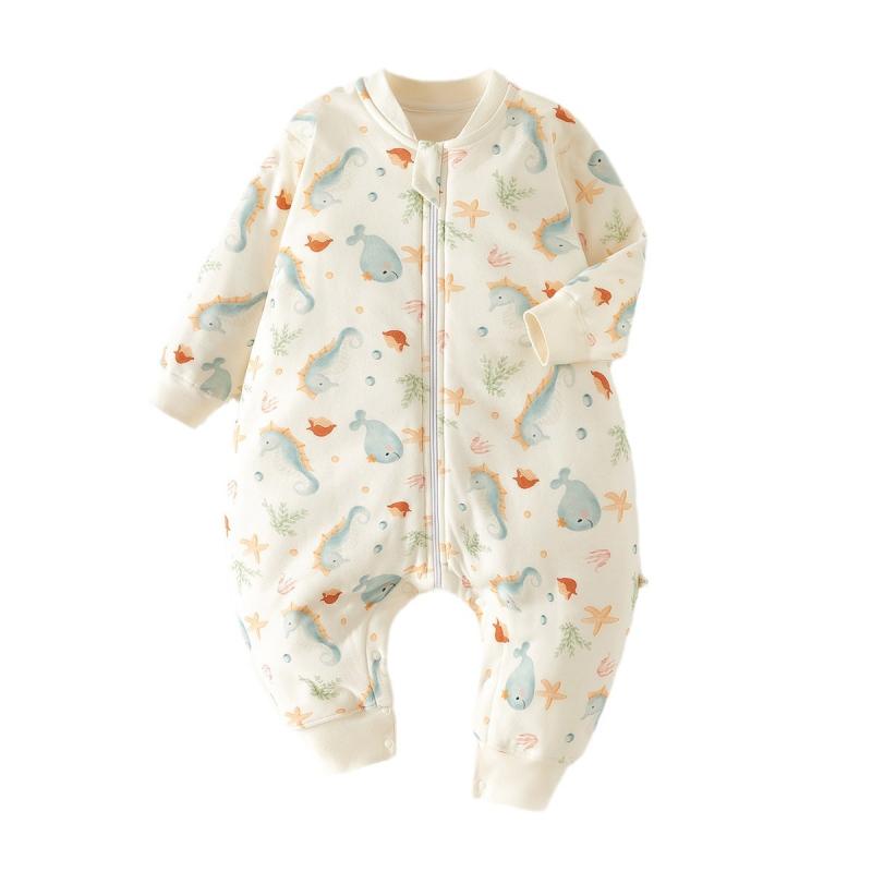 ベビー スリーパー 赤ちゃん用 ロンパース 足付き 綿 厚手 温度調整 保温 寝冷え防止 蹴り防止 かわいい キャラクター