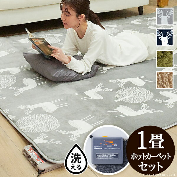 ホットカーペット カバー 防水 木目調ホットカーペット・カバー 1畳用(200x98) 2点セット ラグ リビングマット フローリング調 クッション性 抗菌 防カビ 防汚 防水 日本製 床暖房対応 ペット 子供 あったか 在宅