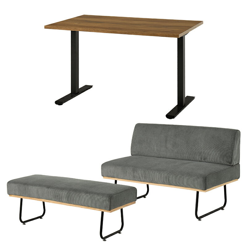 ダイニング3点セット ライトブラウン/ダークグレー[THU3000004414]|ソファダイニングセット デザインベンチ T字脚デザインテーブル