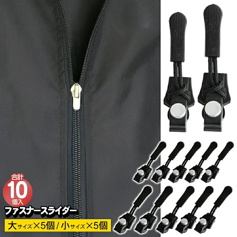ファスナー 取っ手 10個組 《大5個 小5個》 修理用ファスナースライダー EDN-457 チャック 引き手 交換 パーツ[定形外郵便、送料無料、代引不可]