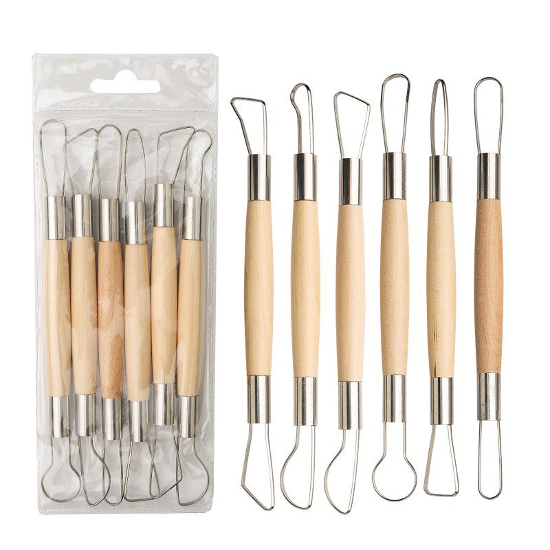 お得 かきべら 粘土道具 6本セット 木製 粘土ヘラ 彫刻ツール 陶芸 粘土細工 クレイ モデリングツール 手芸 造形 手作り 陶器ツール 手作りアート 陶芸道具 粘土彫刻 陶芸体験 陶芸教室 陶芸工房 陶芸スタジオ