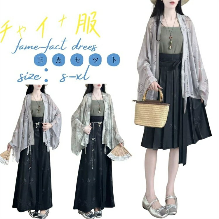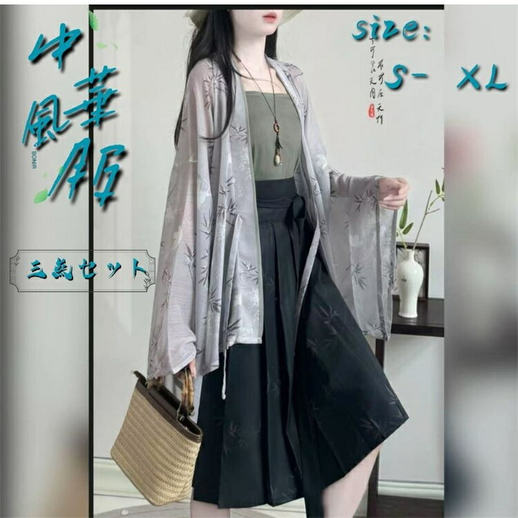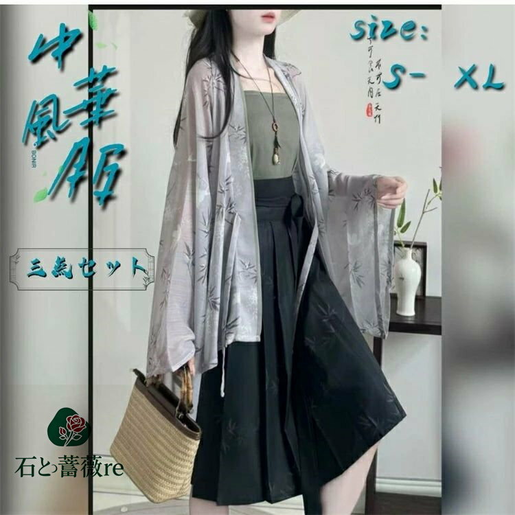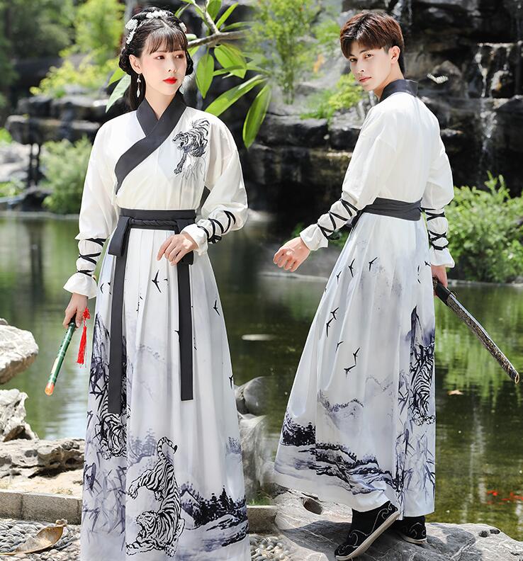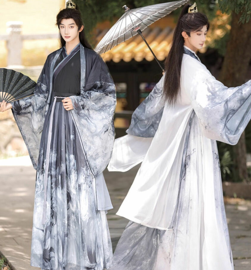 中華コスプレ衣装3点セット メンズ レディース 羽織付き 漢服 チャイナ服 中華服 男女兼用 グラデーション 白黒 山