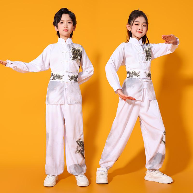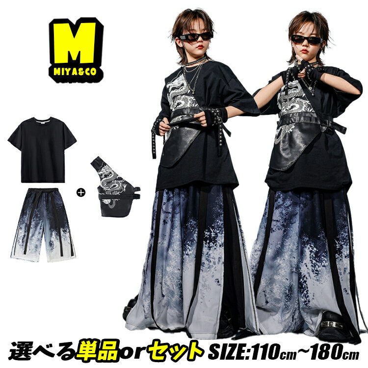 黒白系 中華風 タイダイ 龍柄 キッズダンス衣装 セットアップ