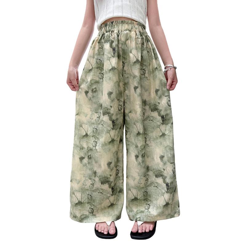 子 キッズ ジュニア 女児 夏 薄手 軽量 接触冷感 防虫 ハイウエスト ワイド ガウチョパンツ