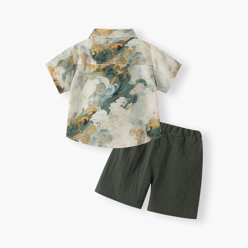 風 柄 おしゃれ スポーツ カジュアル 普段着 2点セット 薄手 綿 ポリエステル 墨グリーン 幼児服