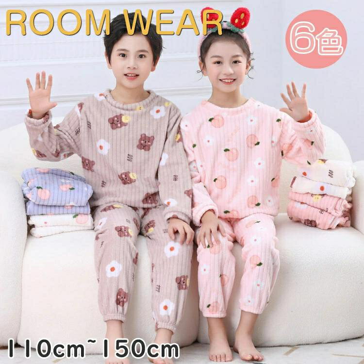 子供服 ふわふわルームウェア セットアップ パジャマ 秋冬 長袖 フリース モコモコ ぽかぽか 部屋着 ルームウェア 女の子 男の子 韓国風 キッズ 上下セット 体形カバー 大きいサイズ ゆったり 秋冬 子ども ジュニア おしゃれ 寝間着 かわいい お家時間 送料無料