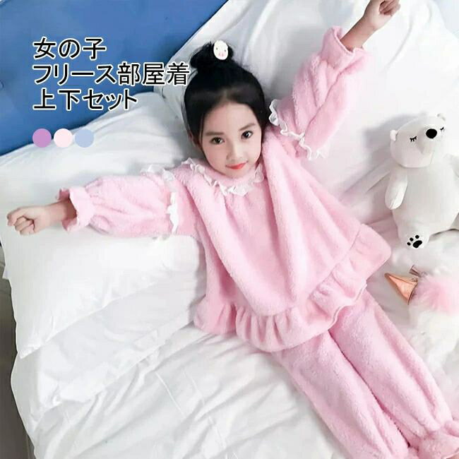 ブルー ピンク パープル 寝巻き ナイトウェア ガールズ フリースパジャマ ジュニア お洒落 フリース部屋着 キッズ あったか 厚手