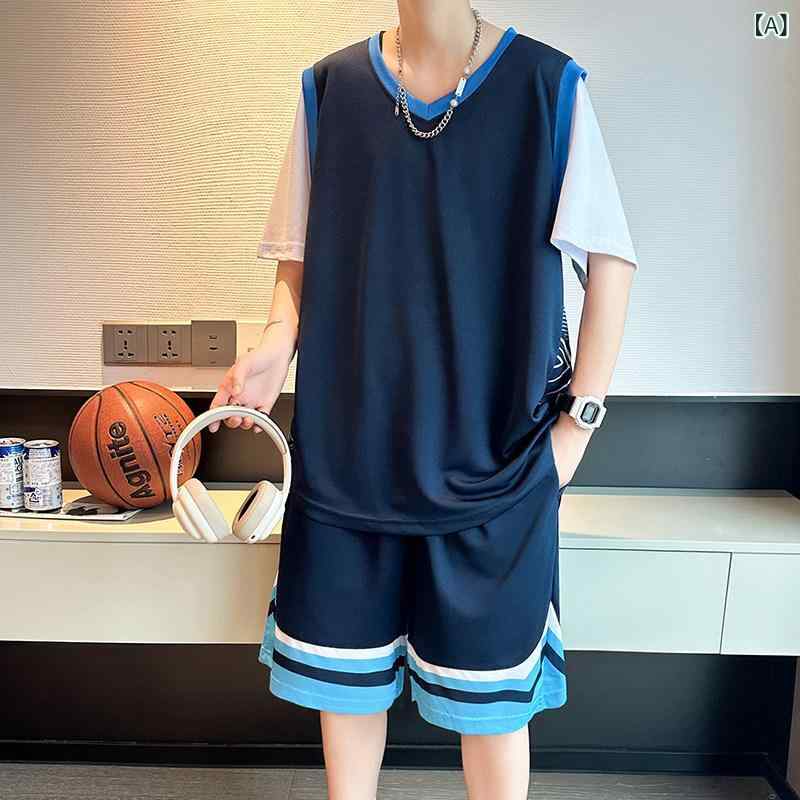 バスケットボール ウェア メンズ 男の子と ティーンエイジャー向け バスケットボール ユニフォーム 夏の 薄手 ベスト ショーツ スーツ トレーニング 速乾の 冷感 通気性 ボール ウェア