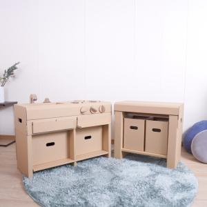punnyほいく アイランドキッチン【L】+ダンボールレンジ セット