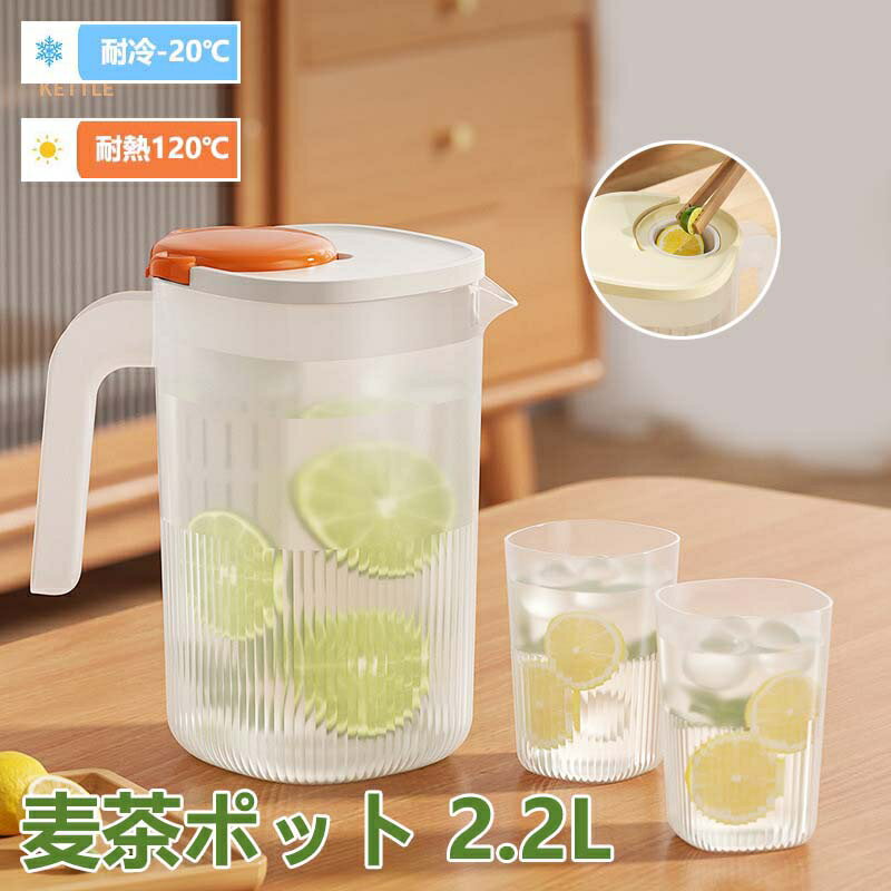 麦茶ポット お茶ポット 麦茶ボトル 冷水筒 耐熱 ピッチャー 2リットル 2.2L 洗いやすい プラスチック おしゃれ 麦茶ポット 水差し 新生活 ミニウォーターサーバー 冷蔵庫 ドリンクピッチャー ティーポット 大容量