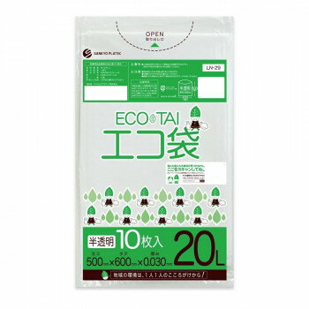 【直送品】ECO TAI エコ袋 20L LN-29 半透明 10枚×100冊【お寄せ品、返品キャンセル不可。欠品終売時連絡あり】