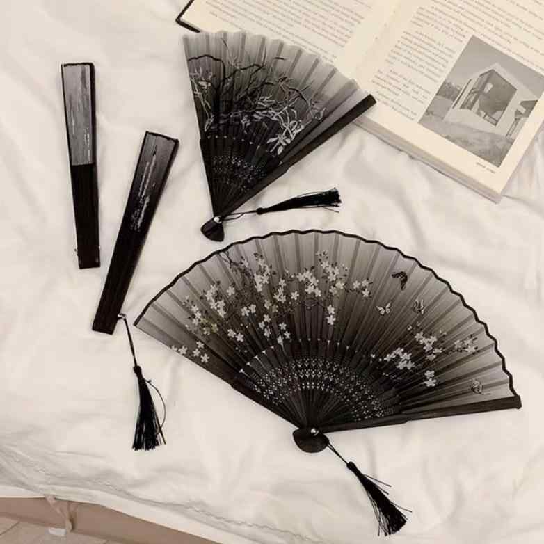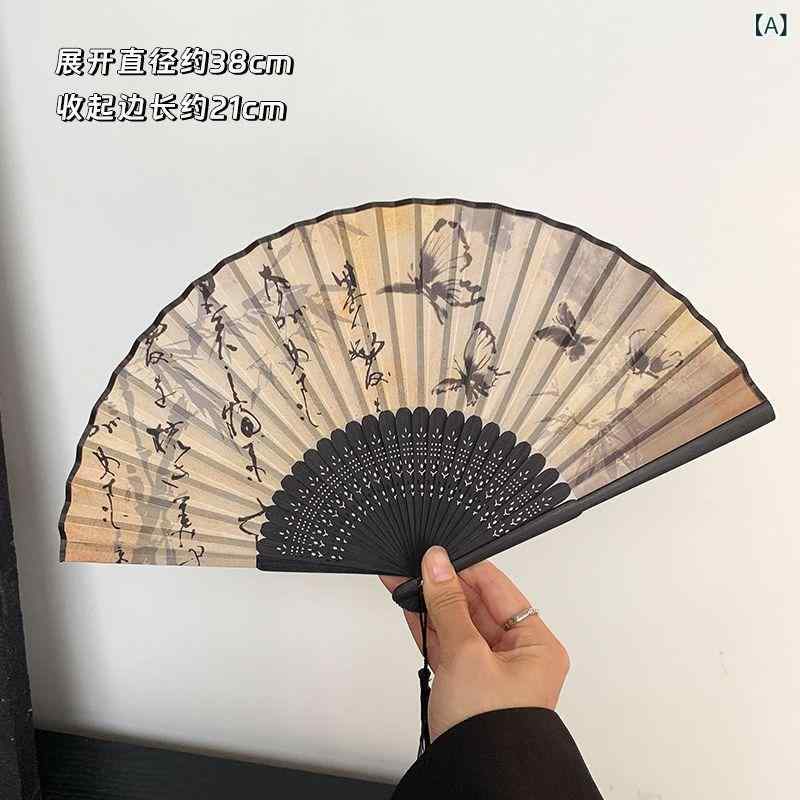 扇子 新中国風 折りたたみ 携帯用 竹製 黒色 古風 ダンス 漢服 馬面スカート 夏 サマー 書道風 蝶柄