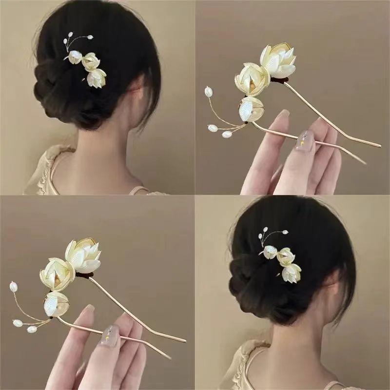かんざし レディース モクレン U字 巻き花 新中華風 エレガント