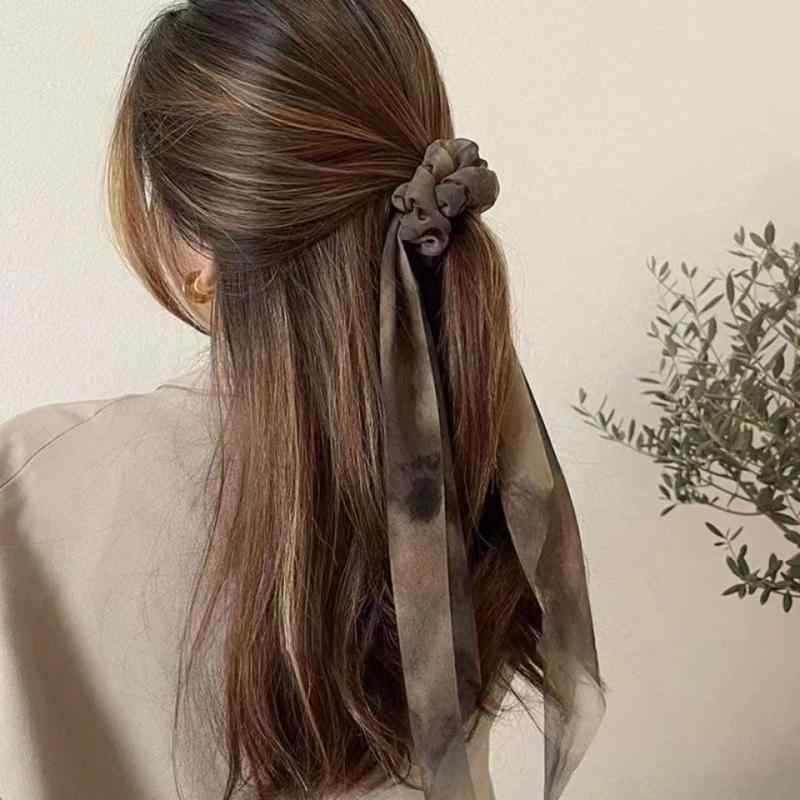 風 リボン 高弾力 伸縮性 エレガント おしゃれ 上品 かわいい 布製 ハンドメイド 普段使い 職場 通勤 お出かけ まとめ髪 ヘアアクセサリー ブルー ブラウン グレー