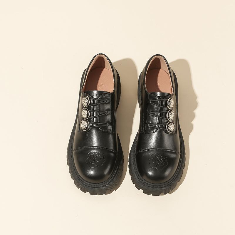 ガールズ 女の子ファッション 小さな革の靴 レトロ 厚底 シンプル ローファー シングルシューズ[K](T)