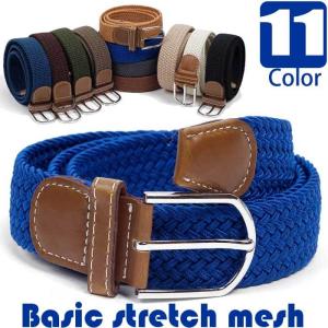 ベルト ストレッチ メッシュ 編み 穴なし 伸縮 無段階で調整自由 無地 ソリッドカラー カジュアル ゴルフ アウトドアに 男女兼用 ユニセックス