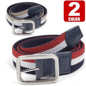ベルト ストレッチ メッシュ ボーダーライン 編み 穴なし 伸縮 無段階で調整自由 ゴルフ アウトドアに 男女兼用 ユニセックス