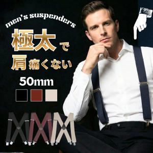 サスペンダー メンズ レディース X型 50mm 幅広 強力クリップ ズボン吊り ビジネス フォーマル カジュアル