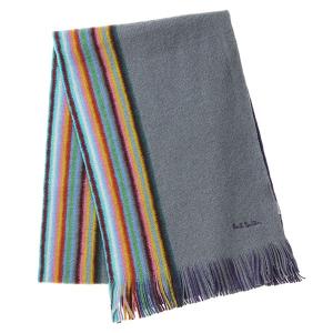 並行輸入 ポールスミス マフラー・ストール ダブルフェイス ストライプエッジ スカーフ 356E AS10 76 チャコールグレー/ブルー 青/マルチ 爆買