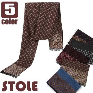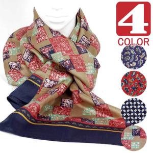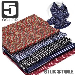 シルク 100% ストール マフラー メンズ ネック スカーフ ペイズリー チェック 箱柄 パターン 細長 ソフト スカーフ 表裏のない2枚重ね縫い