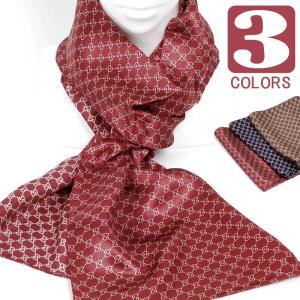 ストール 細長 マフラー メンズ ネック スカーフ シルクタッチ ネイビー、グレー 2色 円、丸パターン デザイン ソフト スカーフ 2枚重ね縫い