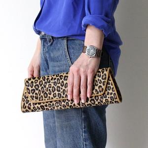 Abas ( アバス ) アニマル パターン クラッチバッグ レオパード レディース バッグ 柄 クラッチ ベージュ レザー ハラコ アニマルプリント マグネット式金具開…