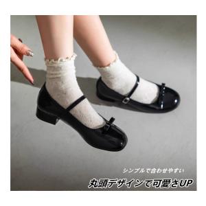 新作 フランス風 マリージェン シューズ レディース エナメル 丸頭 リボン かわいい ジャケット ローファー 太ヒール シンプル シューズSX1508