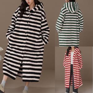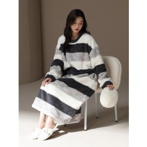 着る毛布 フード付き ルームウェア ワンピース 前開き 冬 長袖 もこもこ ボーダー柄 厚手 部屋着 暖かい 冬 ボタンタイプ 便利 ママ 大きいサイズ XL XXL