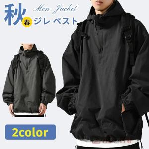 綿アノラックパーカー メンズ プルオーバー ジャケット 綿100% アノラックパーカー ハーフジップ パーカー オーバーサイズ キャンプ ウォーキング お散歩 春秋服