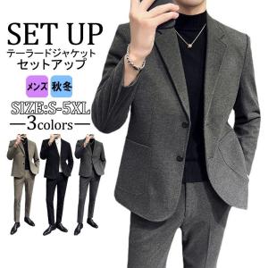 スーツ メンズ セットアップ 上下セット ストレッチ テーラードジャケット パンツ 無地 秋冬 30代 40代 おしゃれ カジュアルスーツ オフィス 仕事 通勤