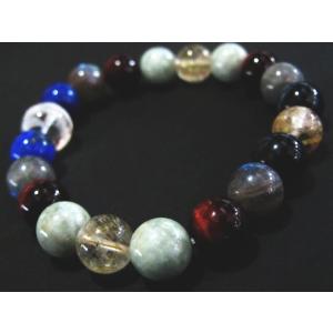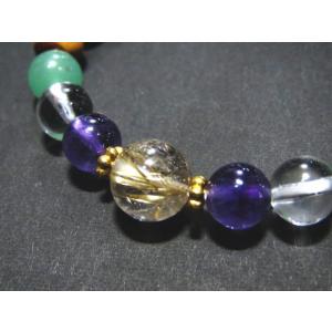 16001-【天然石ブレスレット】ルチルクオーツ+マルチミックス アメジスト 水晶 アベンチュリン タイガーアイ ヒスイ オニキス ロンデル