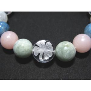 16002-【天然石ブレスレット】水晶四つ葉+マルチ天然石 ヒスイ ピンクオパール アクアマリン レインボー ムーンストーン 【パワーストーン】