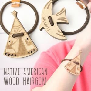 ヘアゴム / ネイティブ アメリカン ウッドカービング ヘアゴム / ヘアアクセサリー ブレスレット ウッド ティピー 鳥