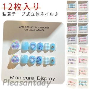 キッズ ネイル チップ 12枚入り 粘着テープ式 ネイルシール ネイルチップ 貼るだけ シンプル 春 夏 秋 冬 こども用 爪やすり キャラクター 花