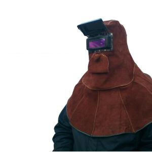 牛革製 溶接面 防炎 溶接マスク 遮光窓付き ゴーグル 皮面 かぶり面 頭巾 火傷防止 レザー 保護具 レンズ ツバなし ヘルメット 脱ぎ簡単 作業用品 柔軟性 通気性