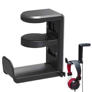 TR-TH002-BK 回転式 ヘッドホンスタンド テーブルクランプ ケーブルフック 360度回転 角度調整 ブラック (06)