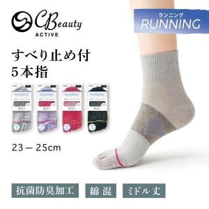 靴下 5本指 ソックス スポーツソックス すべり止め付き ミドル丈 ジム ランニング 部活 アツギ JD46083