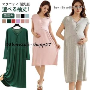 授乳対応 マタニティ 半袖 ノースリーブ 長袖 ワンピース パジャマ 前開き 授乳服 無地 ネグリジェ 入院着 シンプル 涼しい ルームウェア 春夏