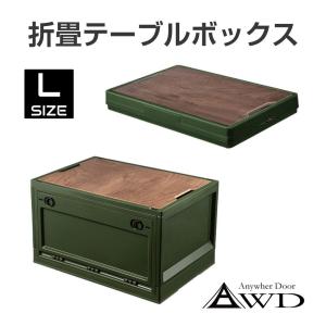 たたみ 蓋付き 屋外 大容量 テーブル 折畳コンテナ型 テーブルボックス 天板木目×グリーン Sサイズ AWD-FBOX11G 送料無料 あすつく