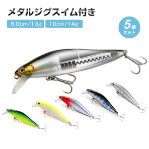 爆売 スイム付き 5個 セット 10g 14g ルアー 激安 飛距離抜群 シーバス ヒラメ サワラ 青物 タチウオ ハタ アジ ポストリップ付 貫通ワ