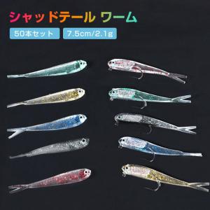 爆売 ソフトルアー シャッドテール ワーム ケイムラ UV 6色 50本 セット 7.5cm アジング メバリング 根魚 ブラックバス ソフトルアー