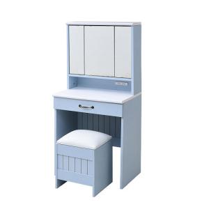 JKプラン フレンチカントリー 三面鏡 ドレッサー コンセント付き 椅子付 ドレッサー 収納 鏡台 3面鏡 化粧台(ブルー)