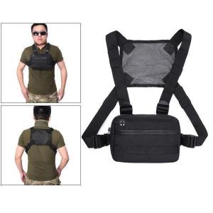 メンズチェストリグベストアウトドアハーネスバッグハイキングポーチショルダーバッグブラック