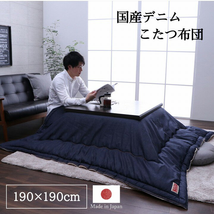 こたつ布団 電気代節約 おしゃれ 正方形 デニム ネイビー 約 190×190cm こたつ掛け布団 掛布団 炬燵布団 北欧 シンプル カジュアル 送料無料