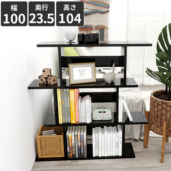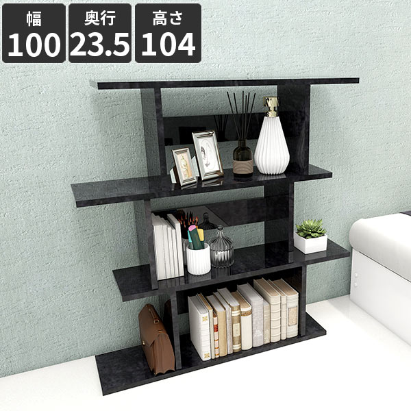 パーテーションラック パーティション 鏡面 オシャレ 衝立 飾り棚 オフィス 本棚 マガジンラック ディスプレイ棚 書斎収納 間仕切り ディスプレイラック 3段 大理石風 A4 雑誌 オープンシェルフ 在宅ワーク 目隠し モダン 会社 簡単組立品 日本製 ブラック 幅100cm ★