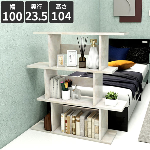 パーティション 衝立 3段 大理石風 本棚 マガジンラック オフィス 雑誌 収納 北欧 木製 自立 在宅勤務 目隠し 間仕切り 飾り棚 おしゃれ オープンラック オープンシェルフ パーテーションラック ディスプレイシェルフ A4 書斎 簡単組み立て品 日本製 ホワイト 幅100cm ★