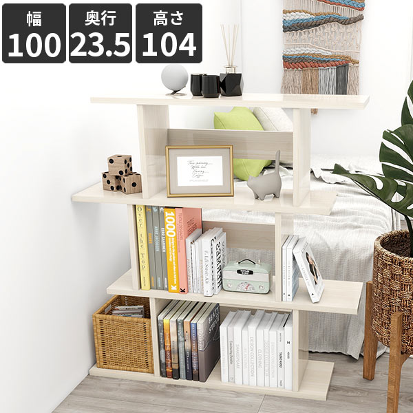 パーティション 衝立 おしゃれ 目隠し オープンラック 木製 間仕切り 飾り棚 3段 収納 パーテーションラック マガジンラック 雑誌 ディスプレイシェルフ 本棚 A4 自立 リビング収納 北欧 オープンシェルフ ショップ サロン 木目調 簡単組立品 日本製 ホワイト 幅100cm ★